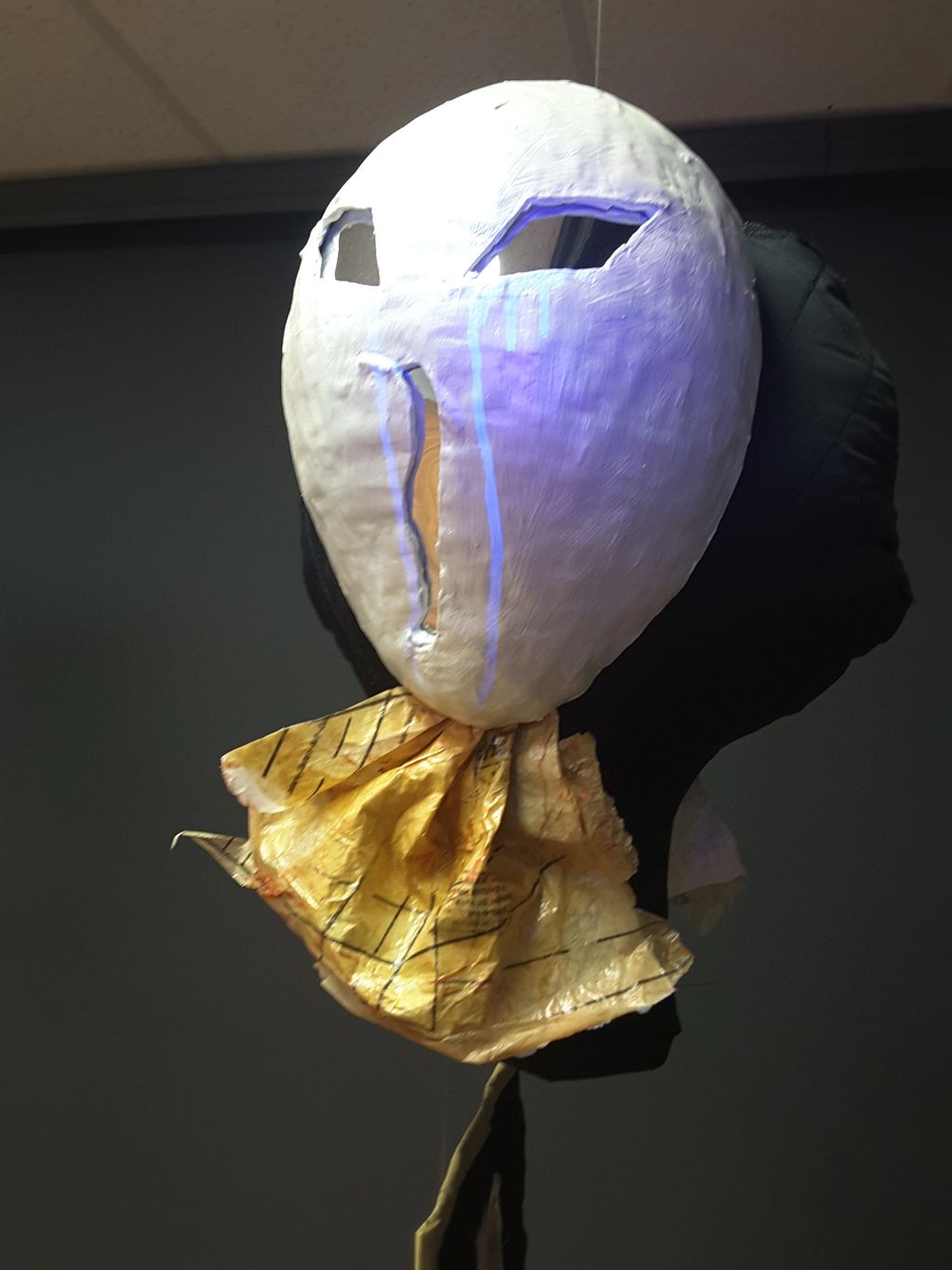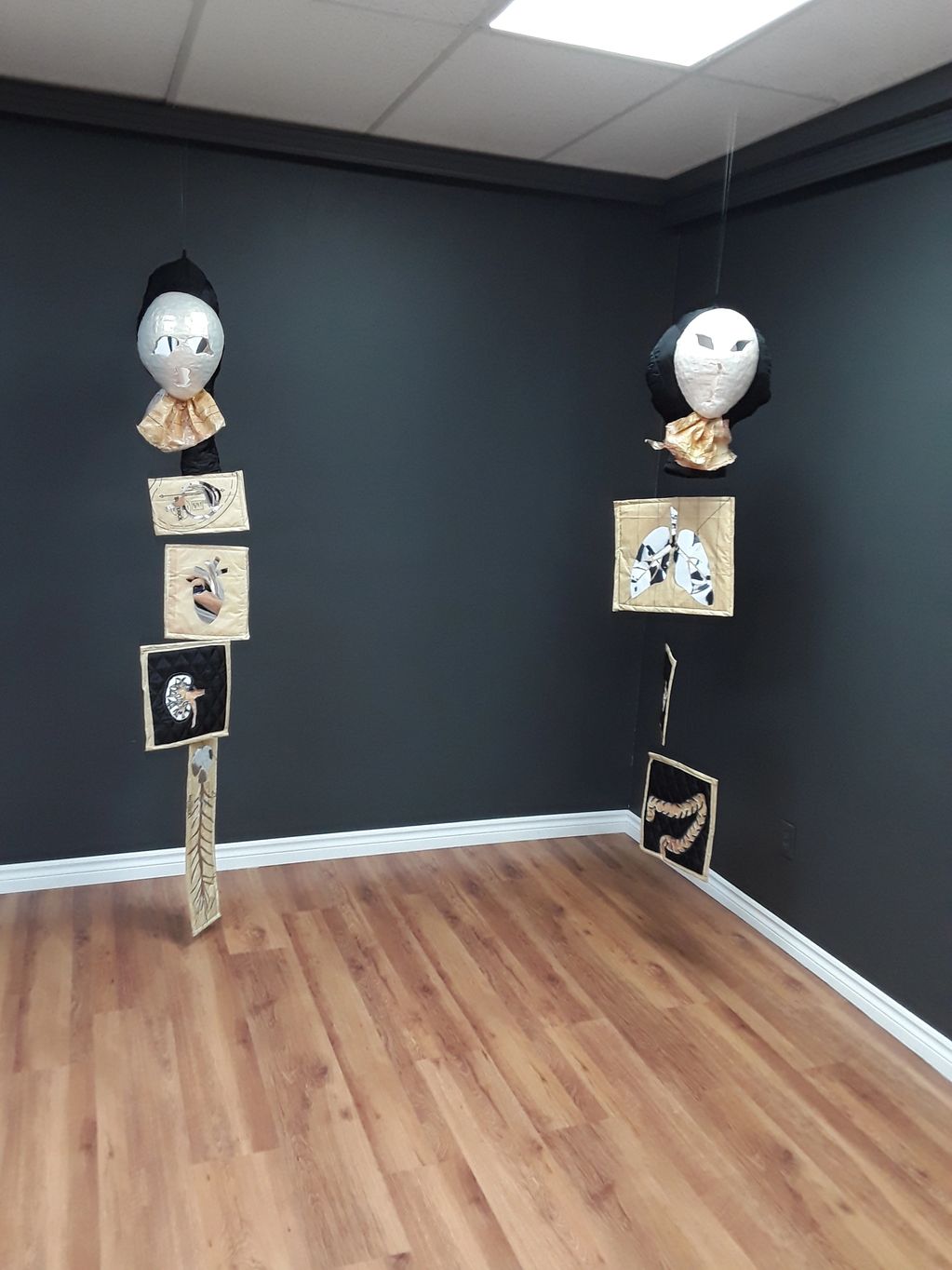 The installation evokes the collapse of the healthcare system. The title merges disillusioned and abused, reflecting both weariness and sacr