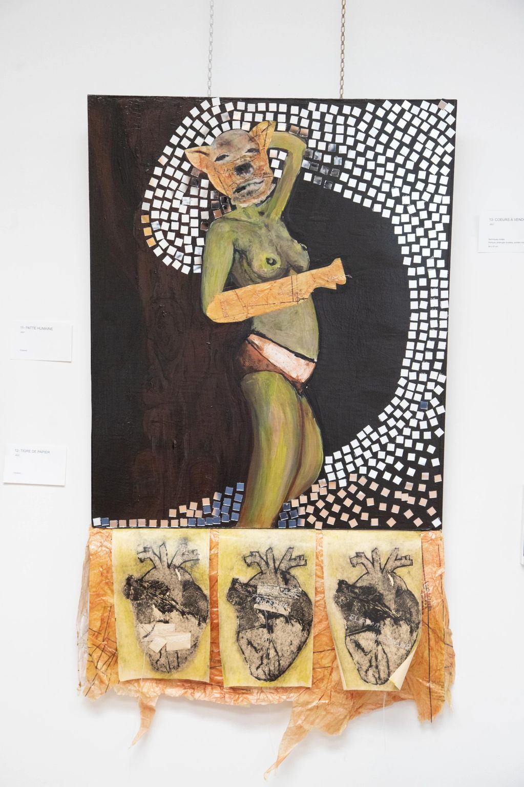 Sacrifices non-consentis présente des créatures hybrides imaginées comme les produits d’un futur magasin biologique. Ces œuvres questionnent la marchandisation du corps et les dérives éthiques d’une société obsédée par la transformation.