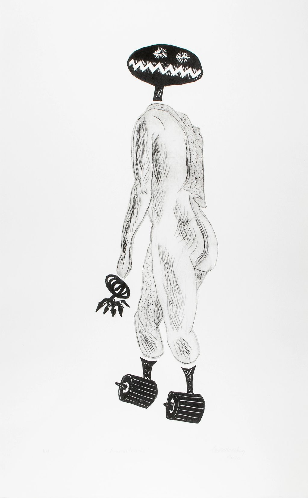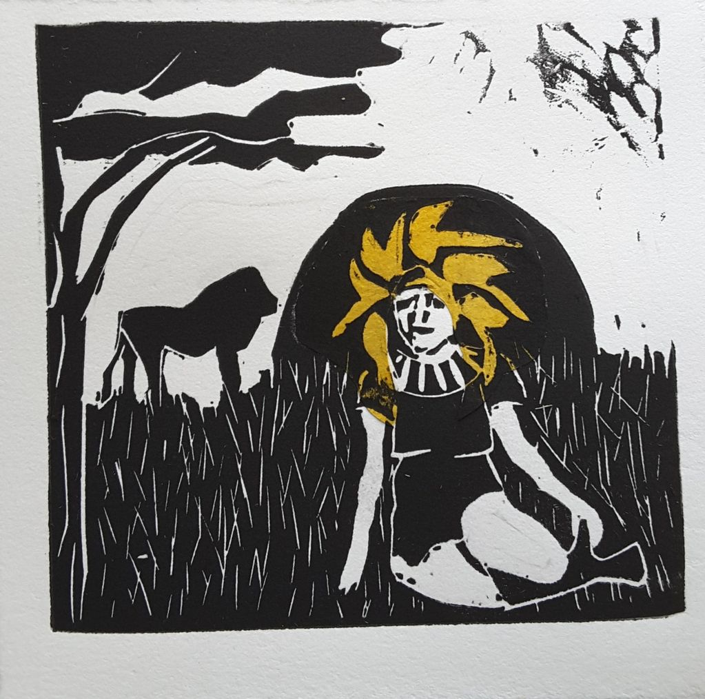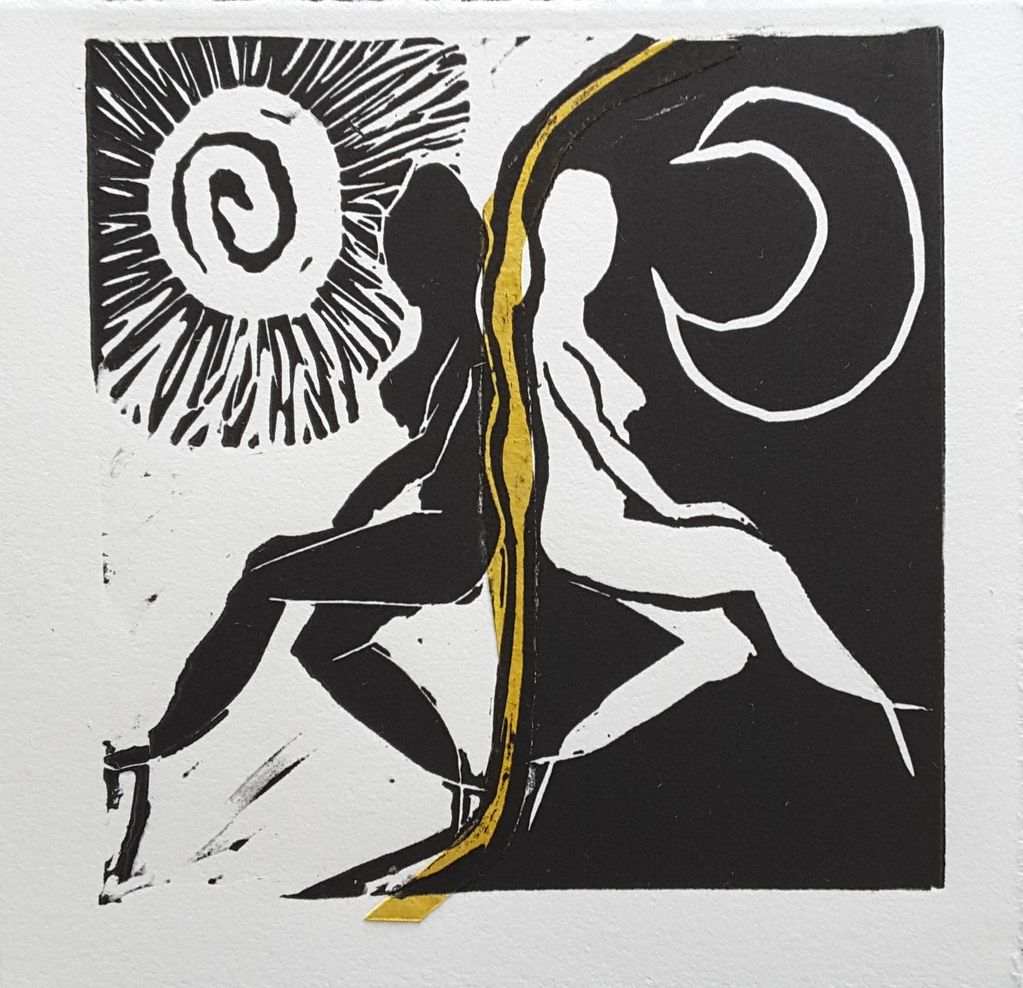 Gravure pointe sèche et linogravure.