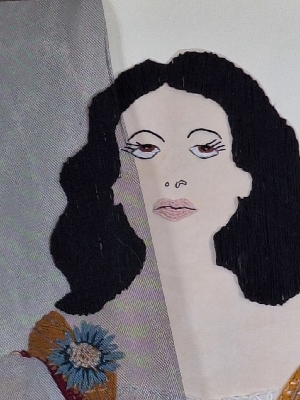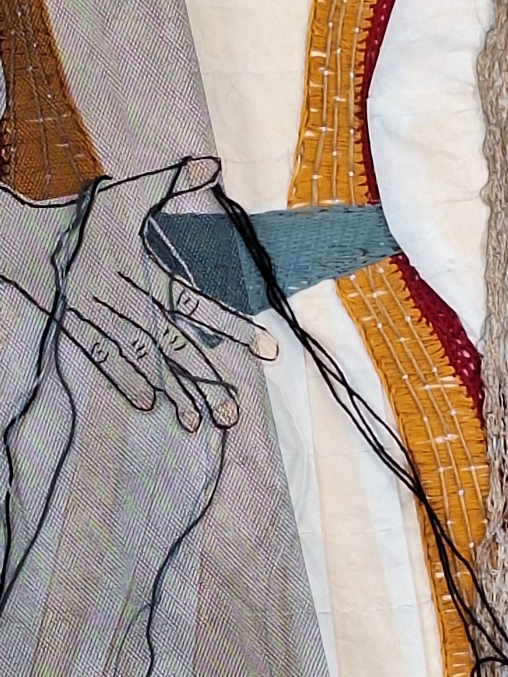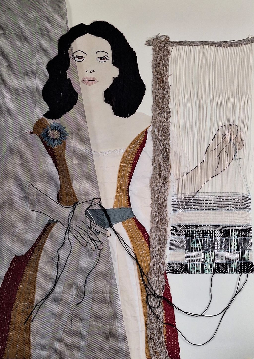 Penelope-Textile assemblage and embroidery on Artistico paper (71 × 51 cm, 2023).