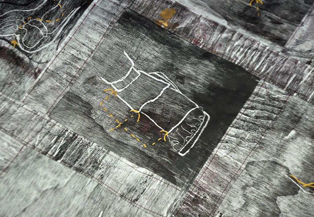 – Collagraphie et pointe sèche sur papier (20 × 25 cm, 2021).