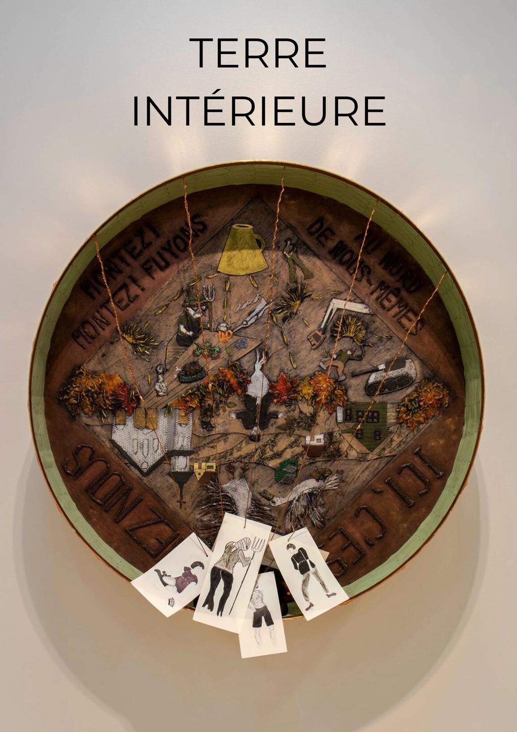 Terre intérieure incarne la psyché humaine et le cycle de la vie. Inspirée de la pièce Habiter les terres, l’œuvre circulaire évoque un mandala en mouvement, où les personnages glissent d’un pôle à l’autre, révélant la dualité intérieure et la quête d’équilibre.